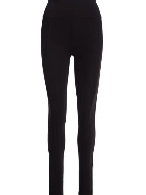 Детали: высокая посадка, ультраоблегающий крой, длина до щиколоток, молнии по боковым швам, широкий пояс.