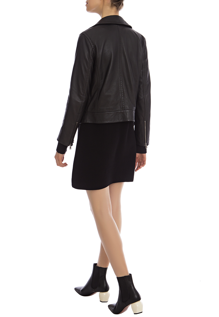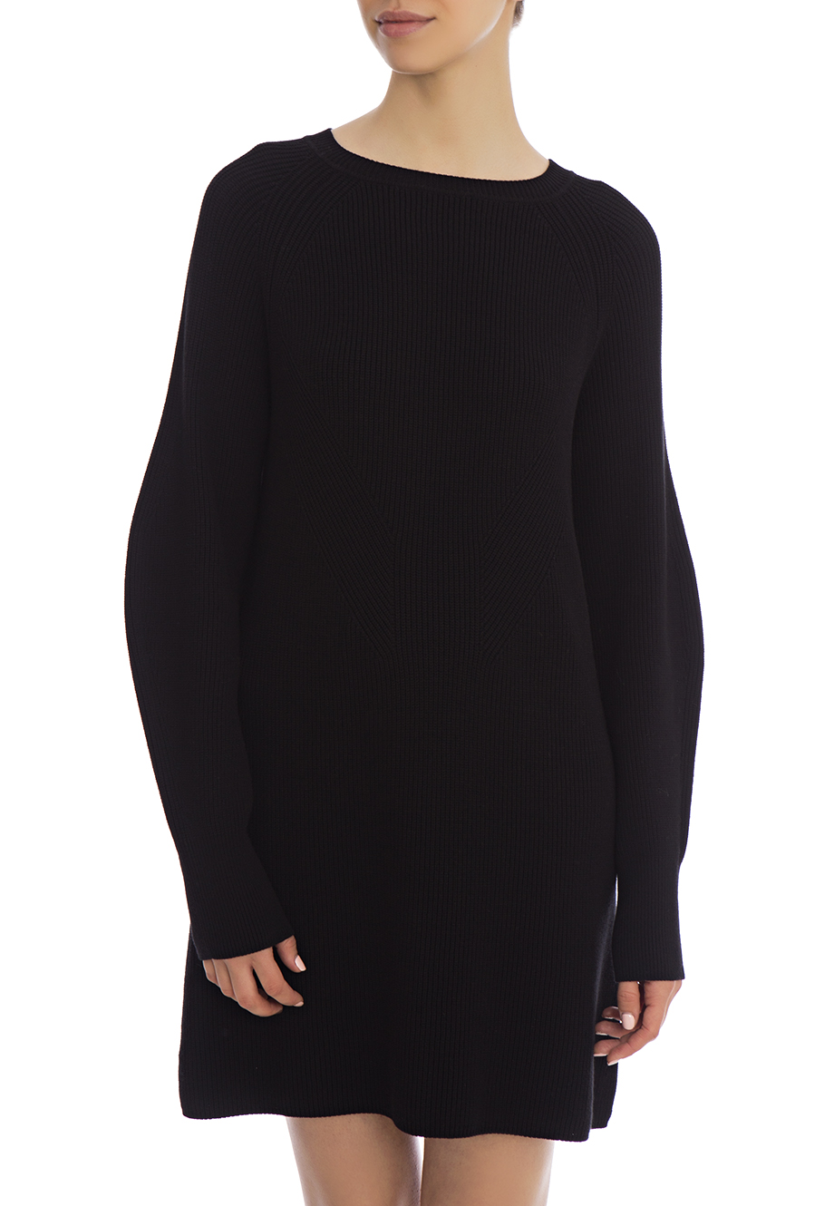 Детали: А-силуэт, длина до середины бедра, круглый вырез горловины, удлиненный объемный рукав, фактура вязки – в рубчик.