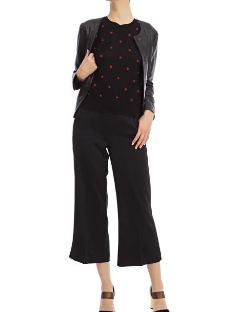 Детали: клёш от колена, высокая посадка, стрелки вдоль штанин, с двух сторон ряды декоративных пуговиц. Застёгиваются потайной молнией сбоку.