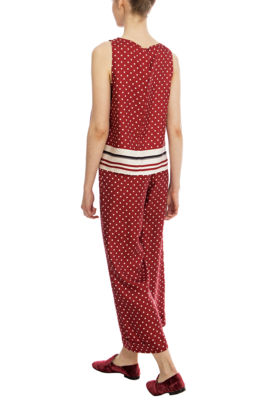 Детали: прямой свободный крой от бедра, средняя посадка, защипы, пояс со шлевками, потайная молния сбоку, контрастный текстильный пояс в полоску. Подгиб по нижнему краю.