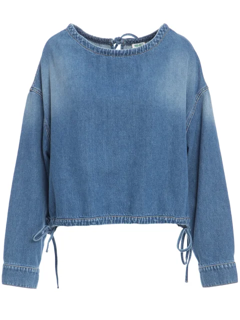 Детали: прямой свободный крой, круглый вырез горловины с завязкой на спинке, спущенный длинный рукав с манжетой на пуговице, по нижнему краю завязки.