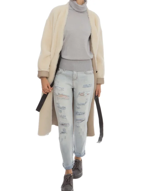Детали: прямой крой, слегка зауженный книзу, низкая посадка, пять традиционных карманов, прорехи вдоль штанин.