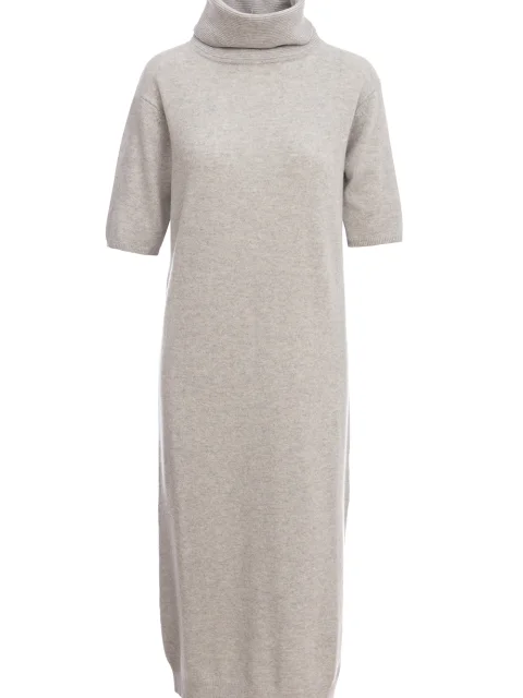 Детали: прямой свободный крой, ворот-хомут с отворотом, втачной рукав длиной до локтя, длина миди, боковой разрез.