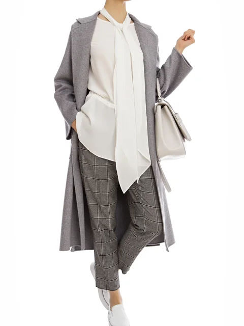 Детали: прямой крой, круглый вырез горловины с пришивным шарфом-лентой, длинный втачной рукав с манжетой-воланом. Кулиска по линии бедер.