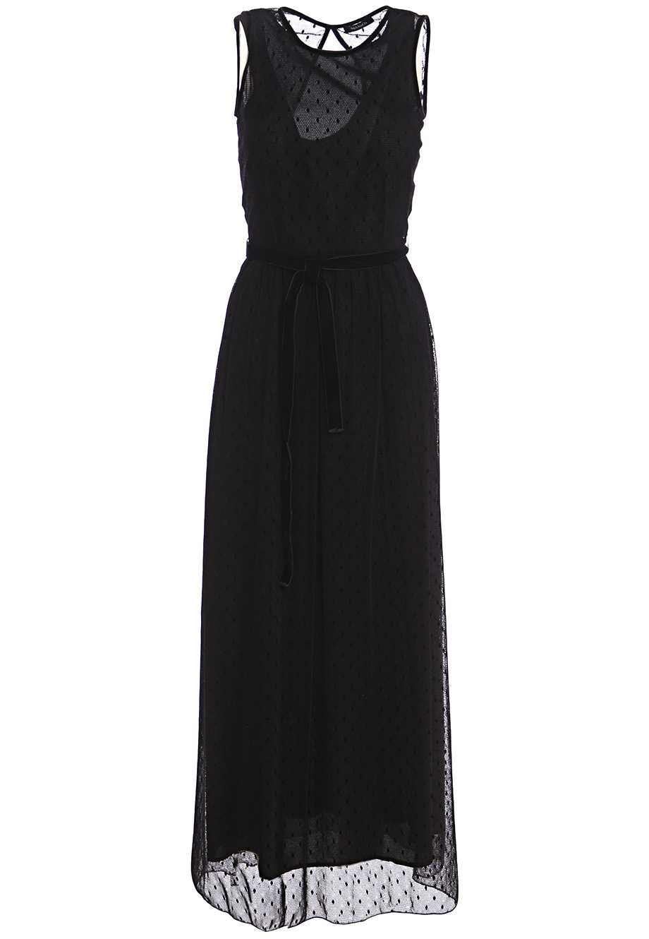 Детали: отрезная линия талии, облегающий топ, юбка А-силуэта с мягкими складками. Отделка горловины и проймы бархатным кантом, вшитый бархатный пояс по линии талии, завязывается на спинке. Нижний чехол из эластичного крепа. На спинке глубокий вырез каплей.