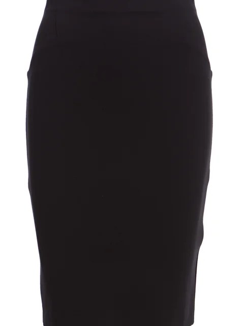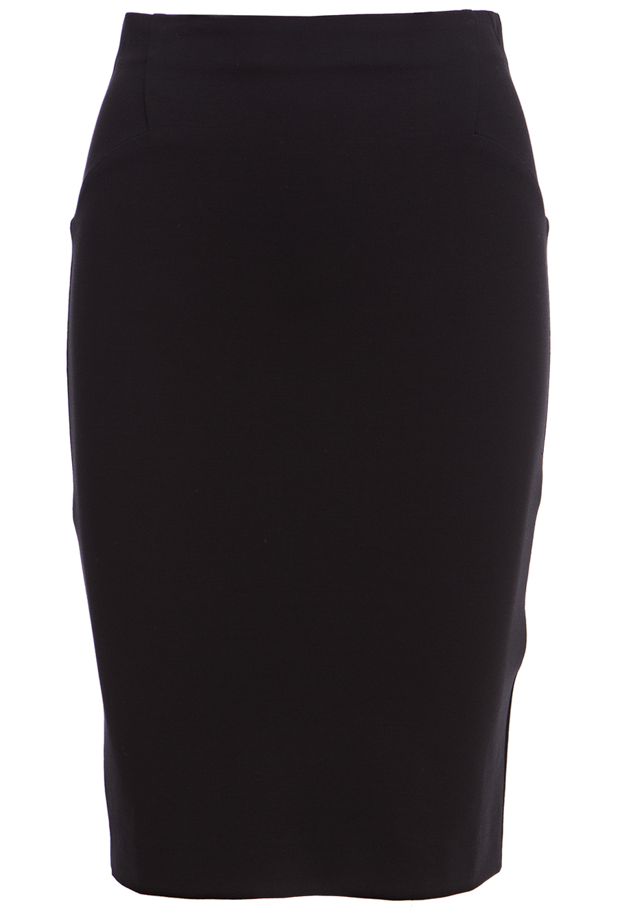 Детали: облегающий крой, высокая посадка, скрытый пояс, длина до колена. Застегивается потайной молнией на спинке.