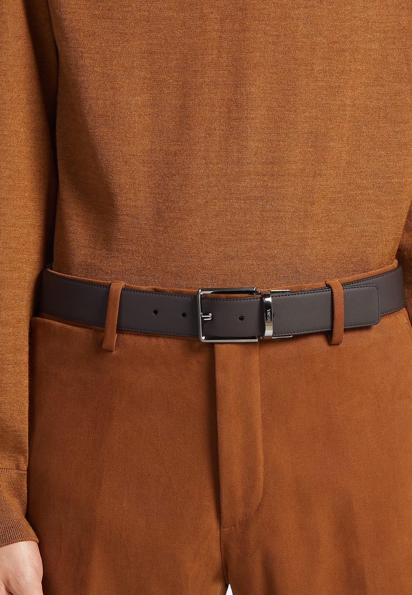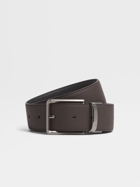 Темно-коричневий двосторонній ремінь Zegna з фактурної шкіри