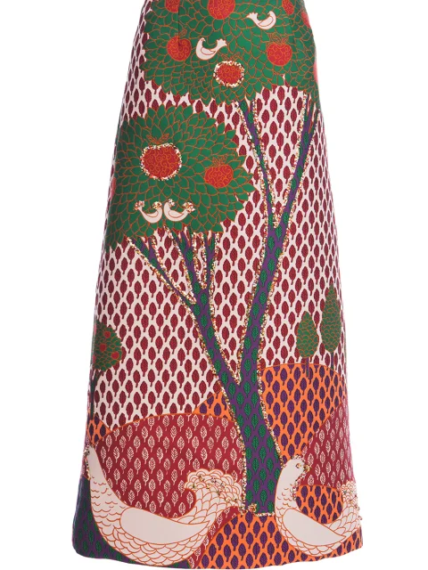 Детали: А-силуэт, жаккардовое плетение рисунка, высокая посадка, скрытый пояс, длина макси, детали узора расшиты блестками. Застегивается потайной молнией сбоку.