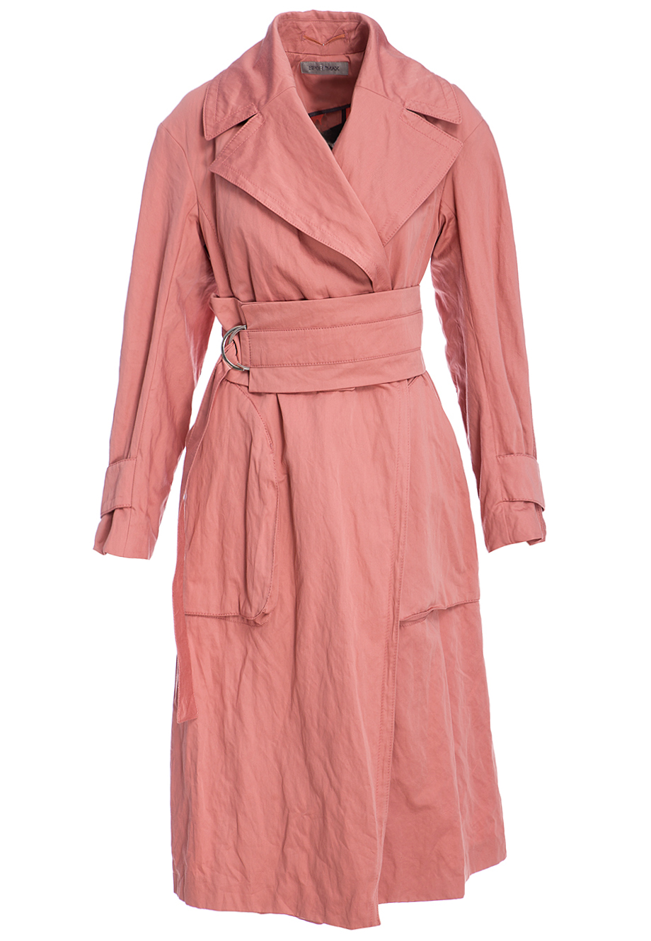 Детали: прямой крой, отложной воротник с лацканами, длинный втачной рукав с патами, большие накладные карманы карго по бокам, по линии талии пояс-кушак с затяжной пряжкой, жатая фактура материала.