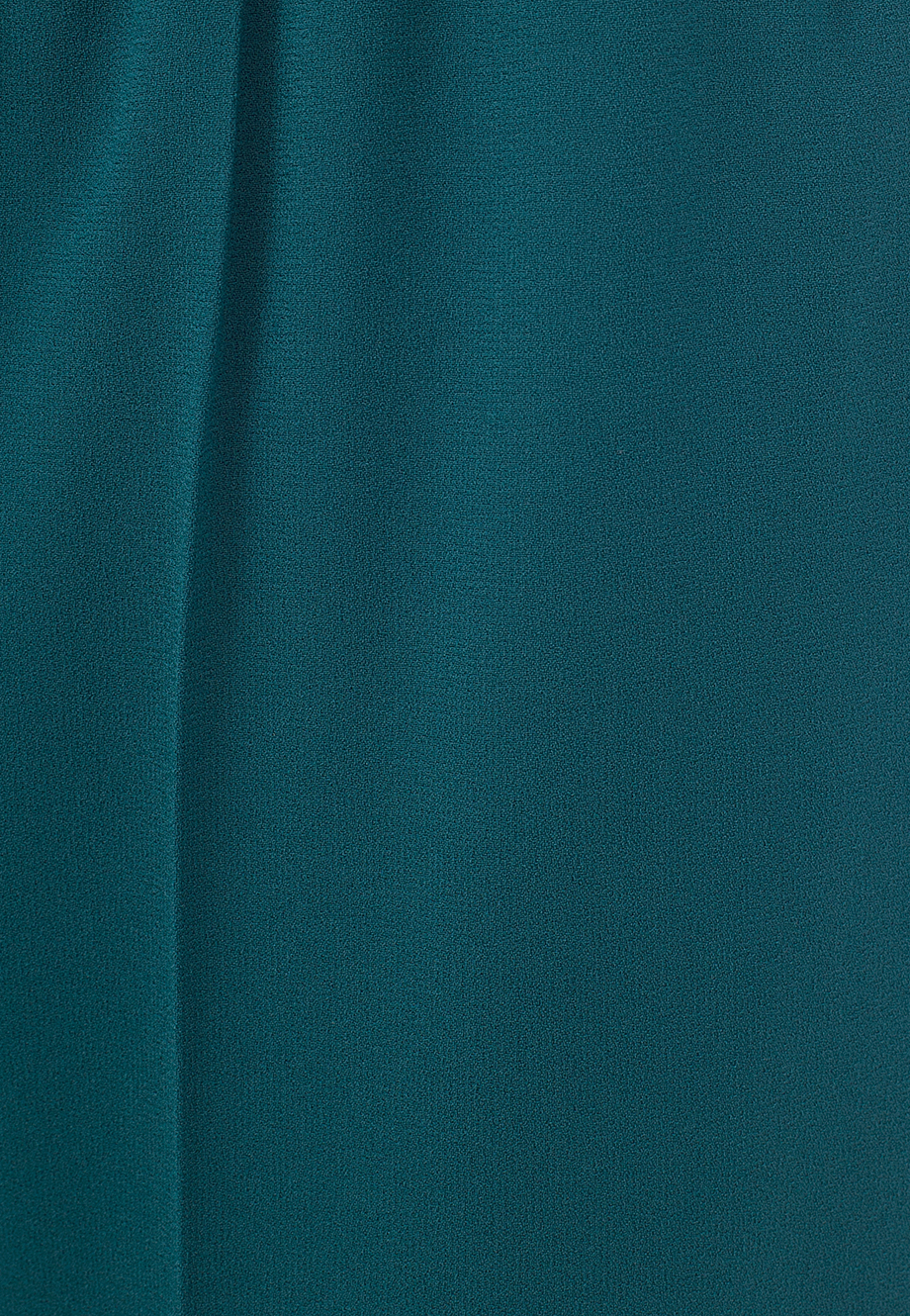 Детали: прямой крой, слегка зауженный книзу, средняя посадка, эластичный пояс на кулиске, декоративные золотистые люверсы. Французские карманы по бокам, сзади два прорезных с рантом. Выраженные стреми вдоль штанин, широкий отворот по низу.