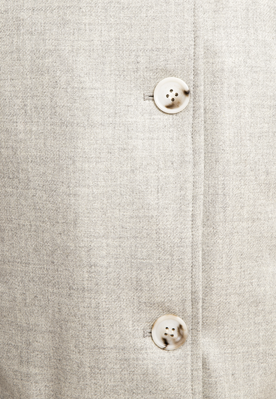 Детали: прямой крой, ворот с капюшоном и отстёгивающимся мехом, прорезные карманы на груди, накладные с клапаном по бокам, длинный втачной рукав. Шерстяное сукно, застегивается рядом пуговиц, утеплитель – пух.