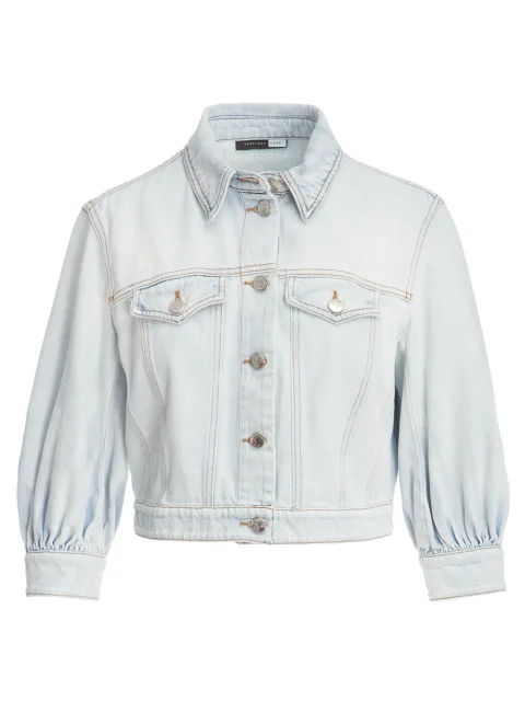 Детали: укороченный крой, отложной воротник, нагрудные карманы с клапаном на пуговице, втесняй рукав длиной ¾ собранный манжетой на пуговице, контрастная строчка, планка с рядом пуговиц.