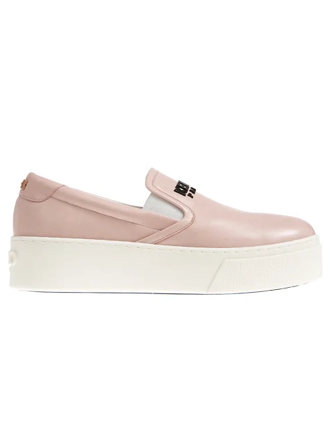 Детали: гладкая матовая кожа, закруглённый носок, высокая прямая подошва из каучука (3 см) на носке логотип из каучука, на подъёме по бокам две эластичные вставки. Внутри отделка белой кожей.