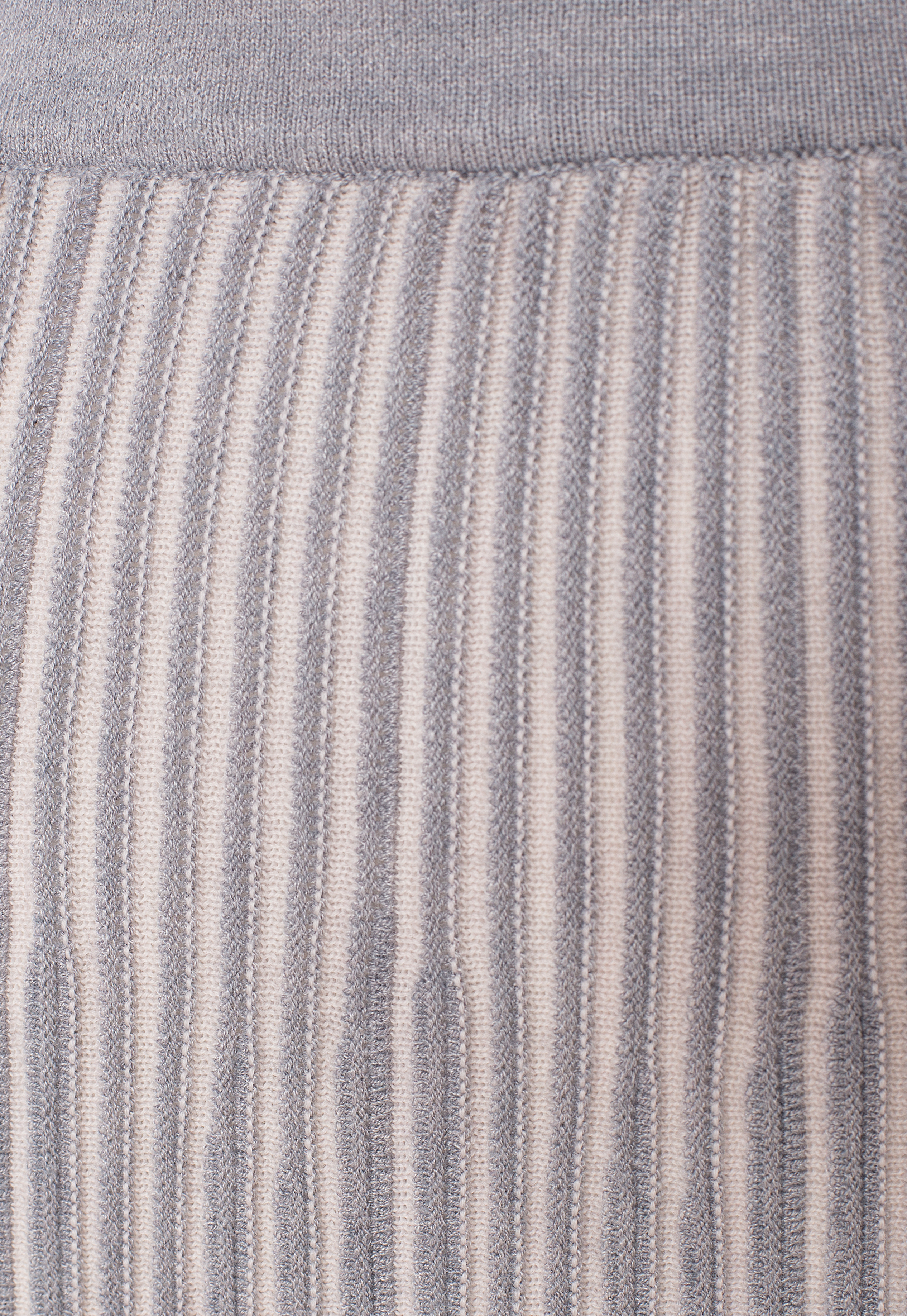 Детали: А-силуэт, эластичный пояс, двуцветная вязка, мелкая плиссировка по всей длине, внутренние складки пудрового оттенка, внешние – серого.