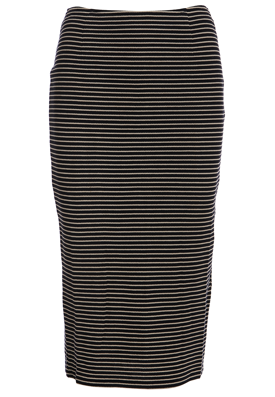 Детали: облегающий крой, высокая посадка, длина ниже колена, скрытый пояс, потайная молния на спинке.