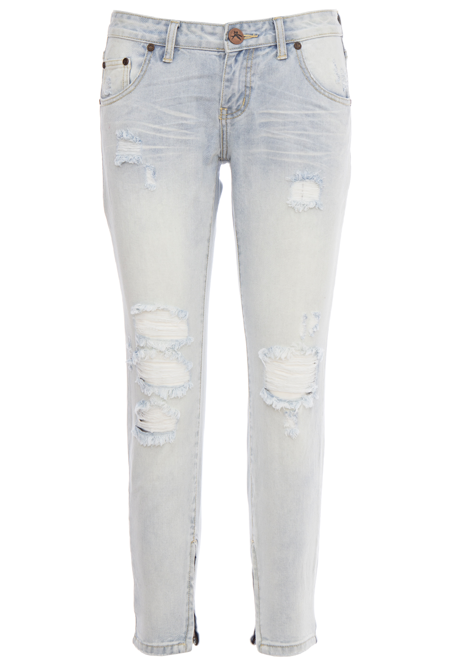 Детали: облегающий крой, низкая посадка, пять традиционных карманов, длина 7/8, внизу молнии по внутреннему шву, прорехи.