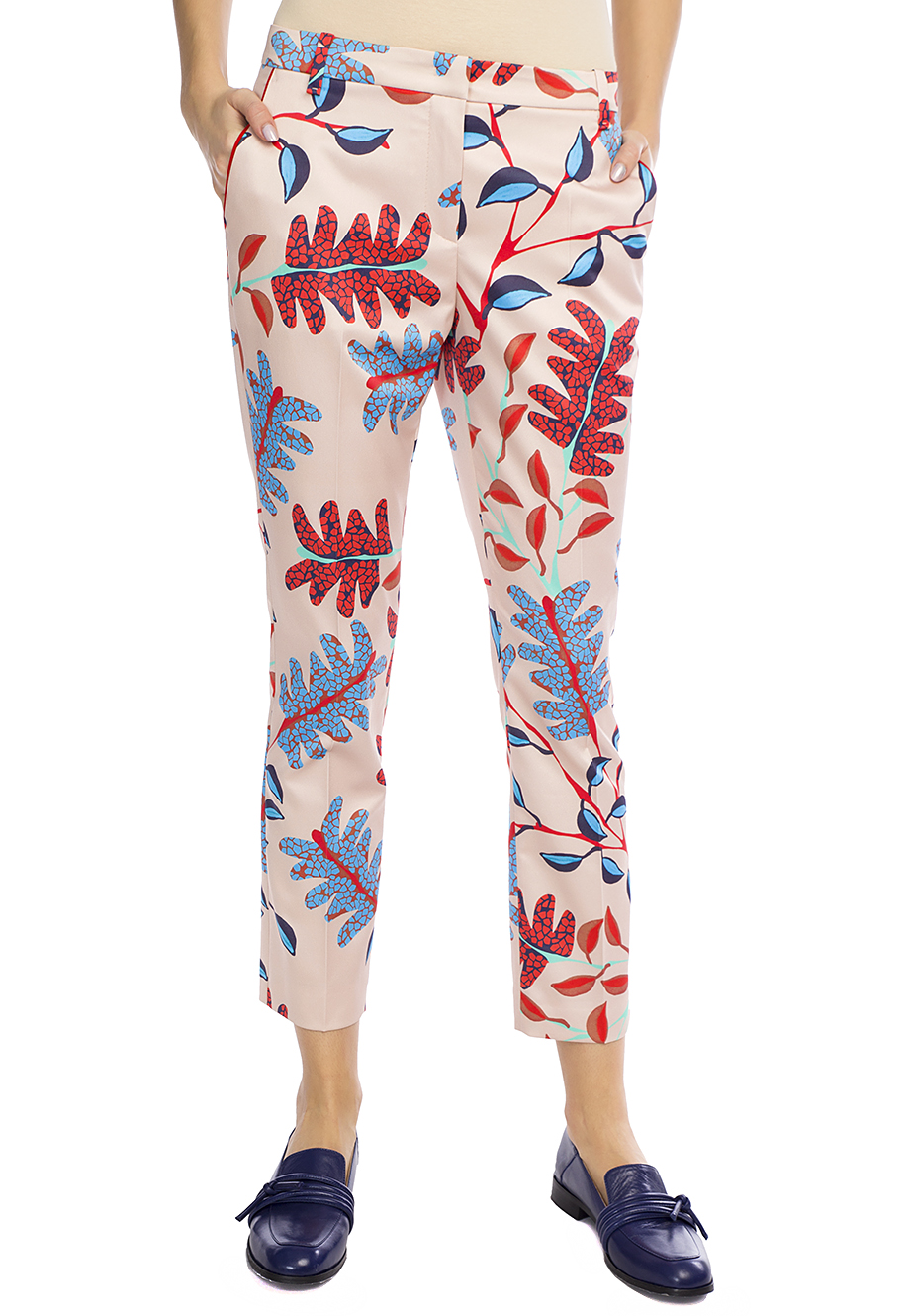 Детали: прямой крой, слегка зауженный книзу, средняя посадка, французские боковые карманы, сзади два прорезных с рантом. Пояс со шлёвками для ремня, скрытый крючок, ширинка.