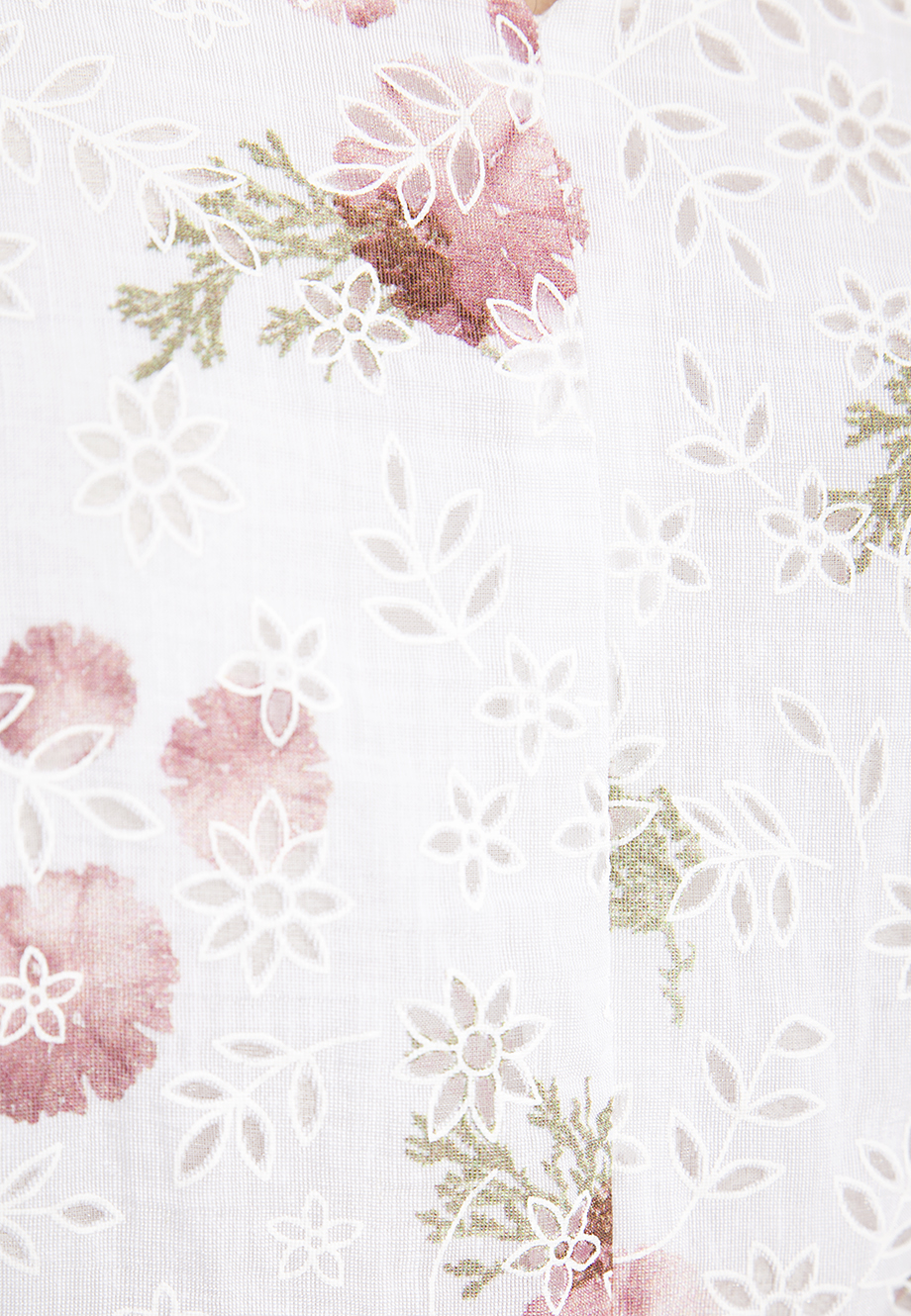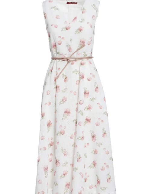 Детали: А-силуэт, V-образная форма декольте, без рукавов, линия талии выделена кожаным поясом, длина миди, цветочный набивной рисунок и паттерн.