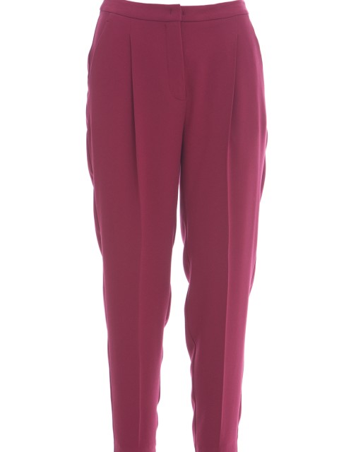 Детали: свободный крой, слегка зауженный книзу, высокая посадка, тонкий пояс, французские боковые карманы, сзади два прорезных с рантом, симметричные защипы, длина 7/8.