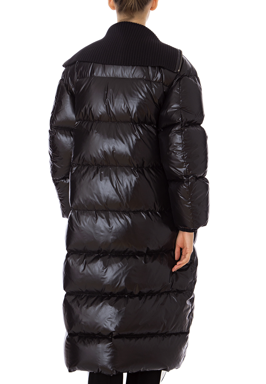 Детали: крой oversized, трикотажный ворот с отворотом, длинный рукав с внутренними трикотажами манжетами, прорезные карманы по боковым швам, объёмная перестежка. Застегивается металлической молнией с двумя бегунками. Утеплитель – пух.