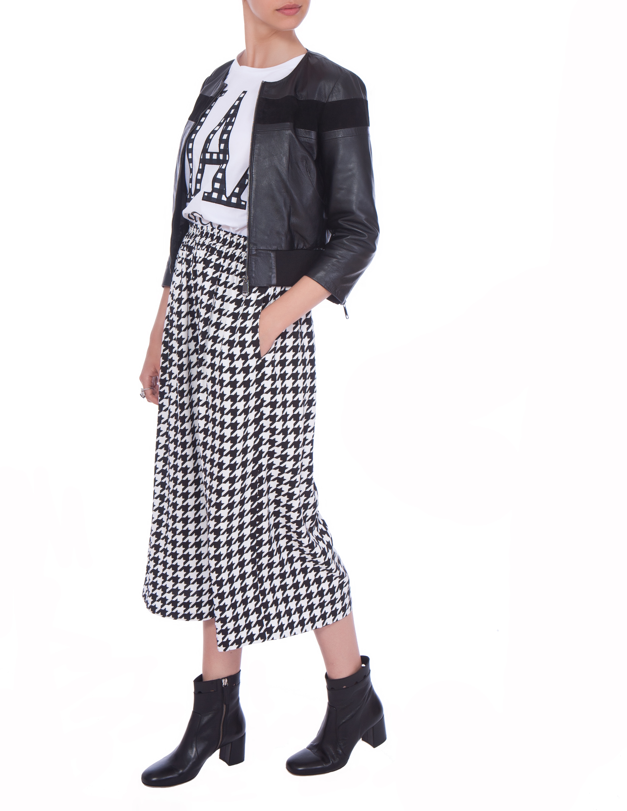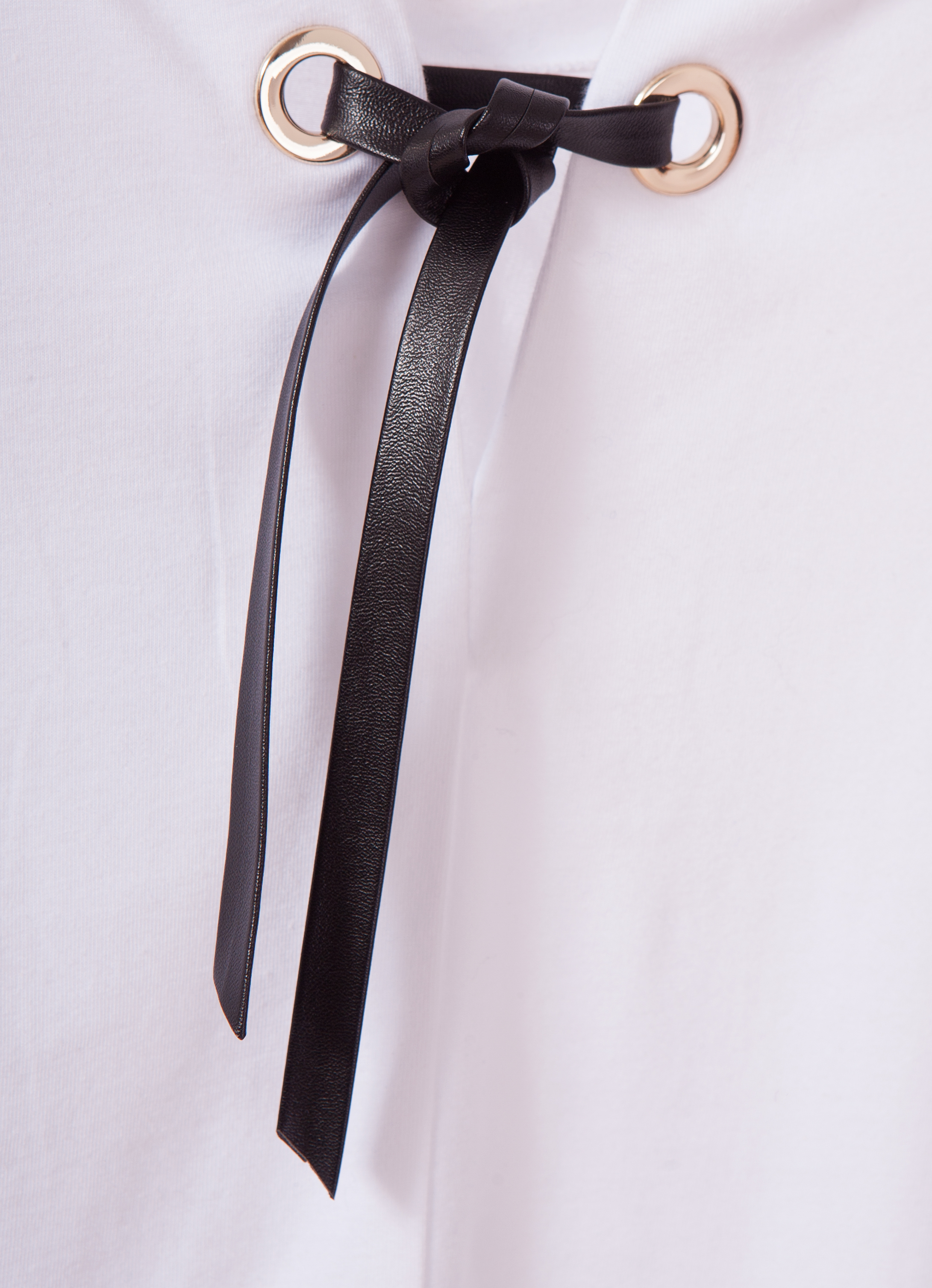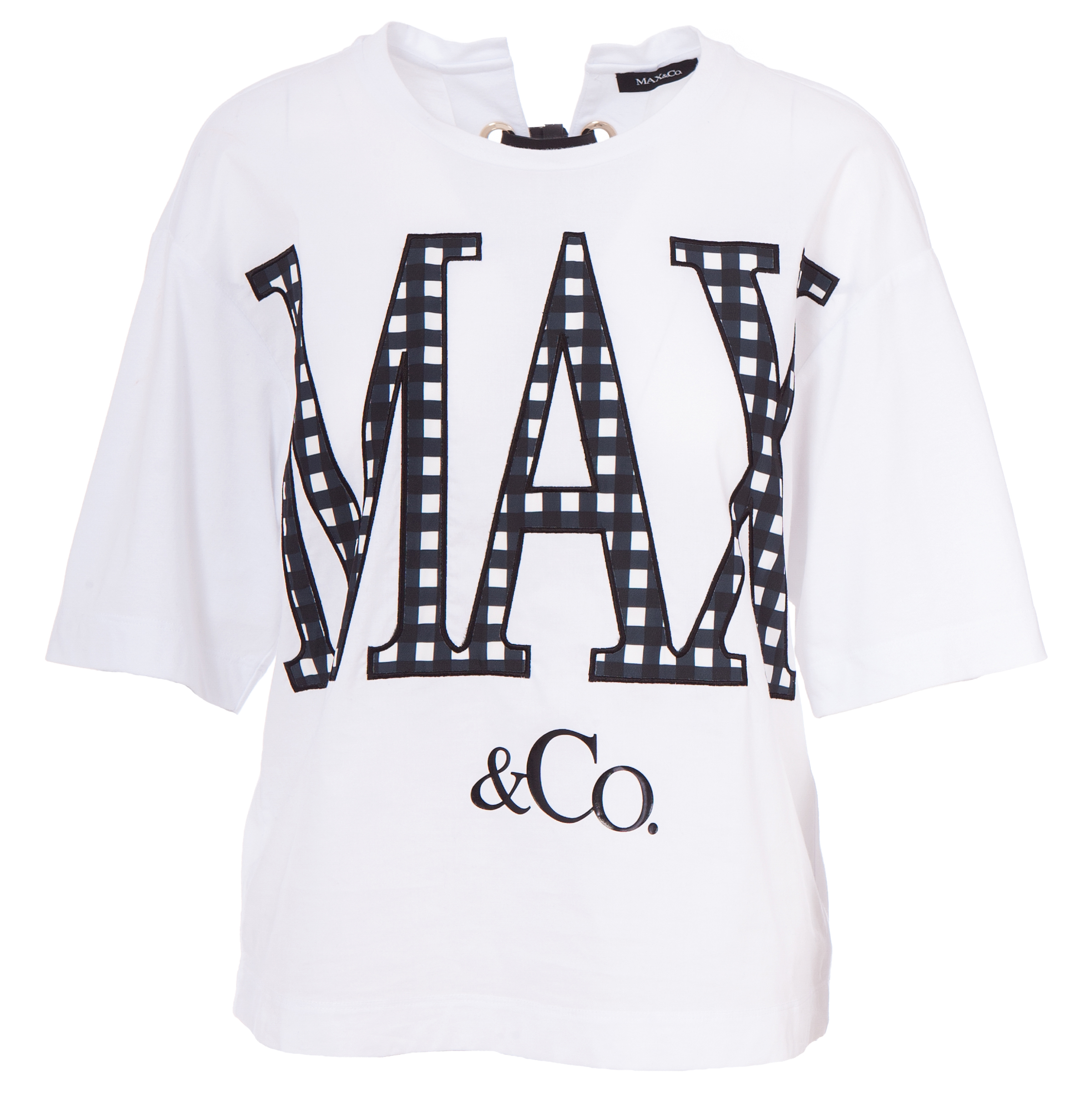 Футболка-oversize прямого кроя с аппликацией на груди. Круглый вырез, спущенный рукав.