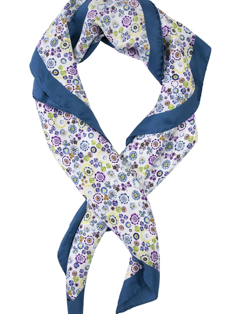 Детали: квадратная форма, цветочный принт, контрастный кант.