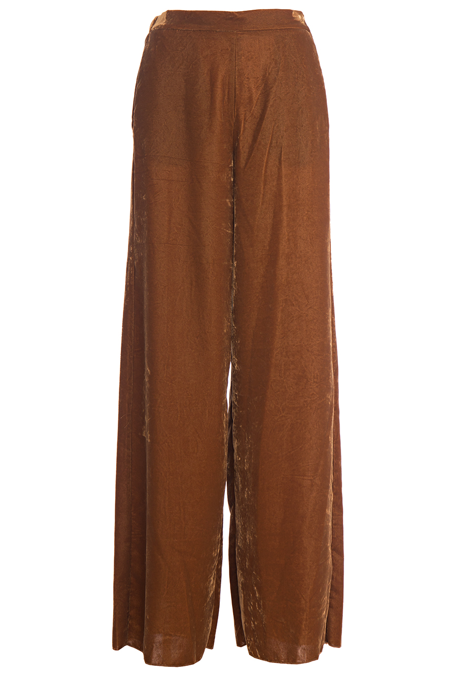 Детали: прямой свободный от бедра крой, высокая посадка, прорезные карманы по боковым швам, пояс с резинкой на спинке.