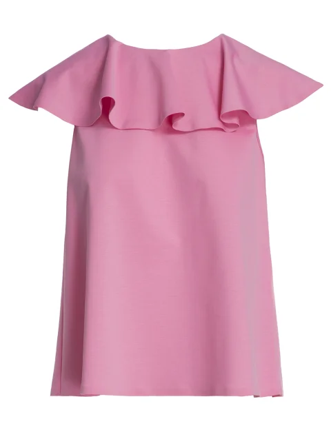 Детали: прямой крой, круглый вырез горловины с рюшей.