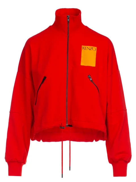 Детали: прямой укороченный крой, высокий ворот стойка, спущенный длинный рукав с манжетой, боковые карманы на молниях, нашивка с логотипом, кулиска по нижнему краю, молния.