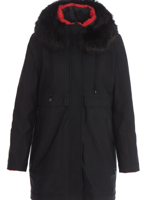 Парка прямого кроя, с кулиской по линии талии, ворот с капюшоном и меховой опушкой, большие накладные карманы с молниями по бокам, длинный втачной рукав, застегивается металлической молнией с двумя бегунками и клапаном на кнопках.