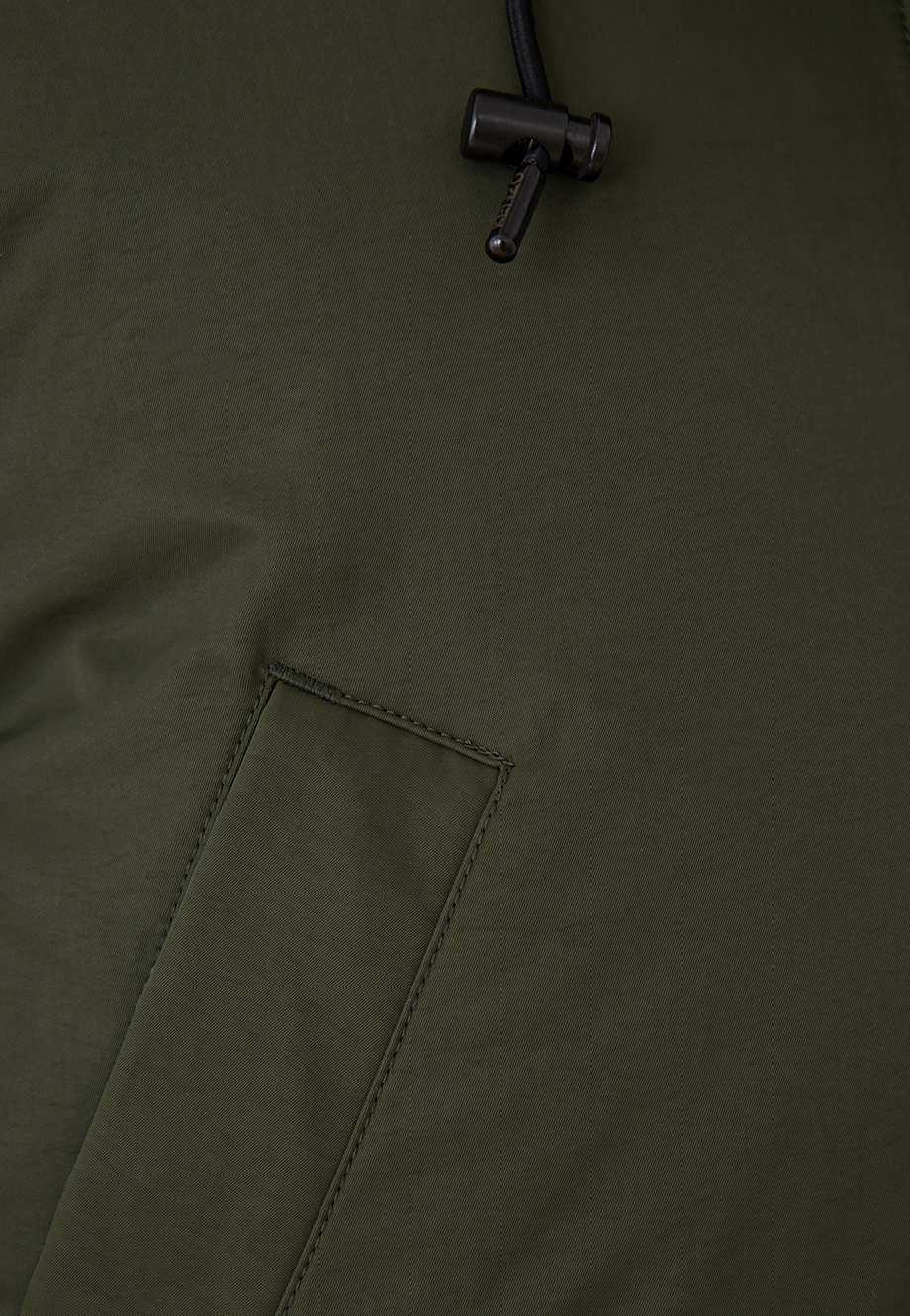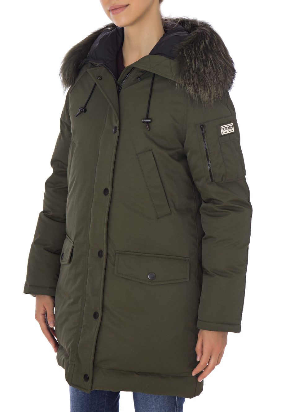 Детали: прямой крой, длина до середины бедра, ворот стойка с капюшоном и отстёгивающимся мехом, длинный рукав с внутренней манжетой, четыре карман по бокам, один на рукаве. Застегивается молнией с двумя бегунками и клапаном на кнопках. Утеплитель – пух.