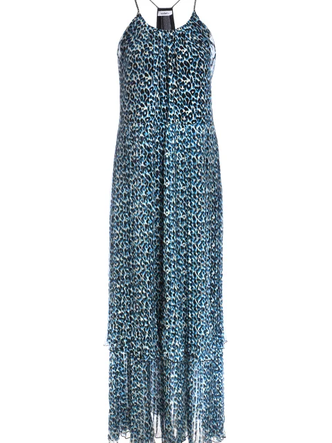 Детали: А-силуэт, тонкие лямки вокруг шеи, открытая пройма по спинке, два яруса материала разной длина, леопардовый принт.