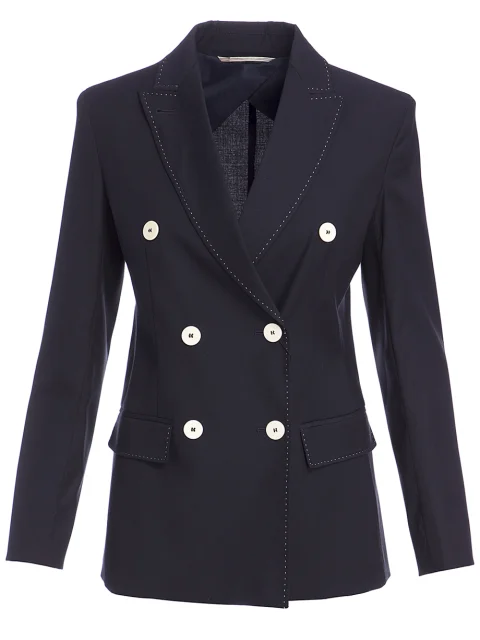 Детали: традиционный крой, отложной воротник с лацканами, длинный втачной рукав, прорезные карманы с клапаном по бокам, застегивается двумя рядами контрастных пуговиц. Ручной стежок по кромке.