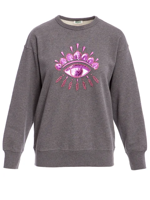 Детали: традиционный овальный крой, круглый вырез горловины, длинный втачной рукав, манжеты по нижнему краю и на рукавах, вышитая пайетками эмблема Eye на груди.
