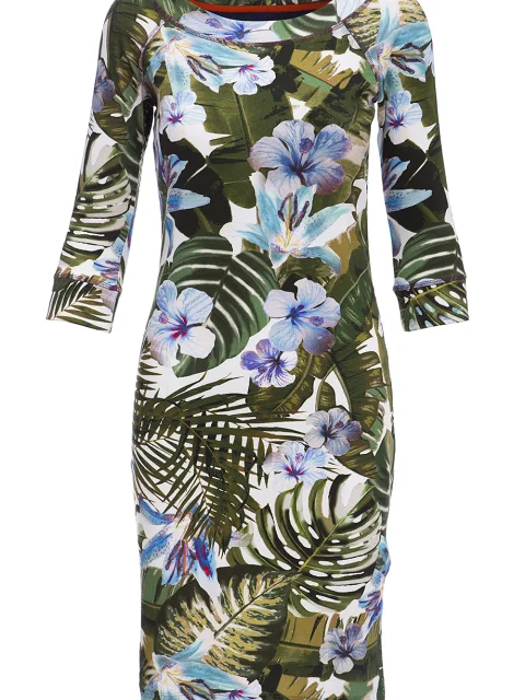 Детали: облегающий крой, вырез горловины лодочкой, рукав реглан длиной ¾, 3D-принт.