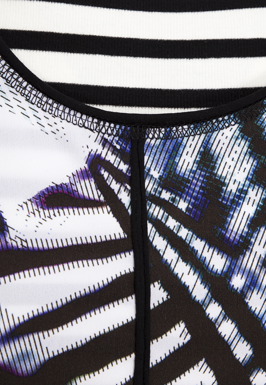 Детали: А-силуэт, круглая форма декольте, двойные лямки на спинке, печатный принт.