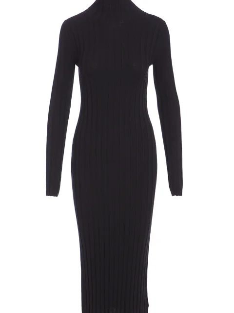 Детали: облегающий крой, высокий ворот, длинный втачной рукав, длина миди, боковые разрезы.