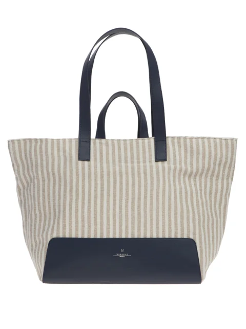 Детали: трапециевидная форма, комбинация кожи и текстиля, две кожаные ручки, застежка молнией.