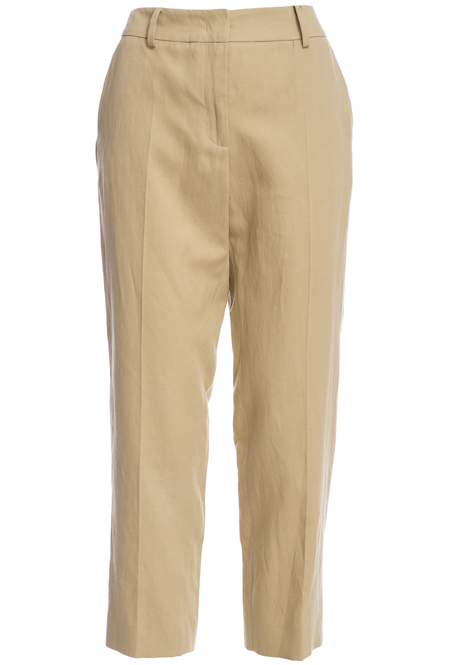 Детали: прямой крой, слегка укороченный книзу, средняя посадка, французские боковые карманы, сзади два прорезных с рантом и пуговицей, длина 7/8, пояс со шлевками для ремня, потайной крючок, ширинка.
