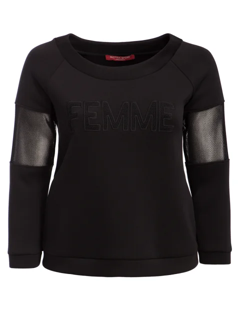Детали: прямой крой, круглый вырез горловины, длинный рукав реглан с вставками из сетки, на груди вышивка, манжеты по нижнему краю и на рукавах.