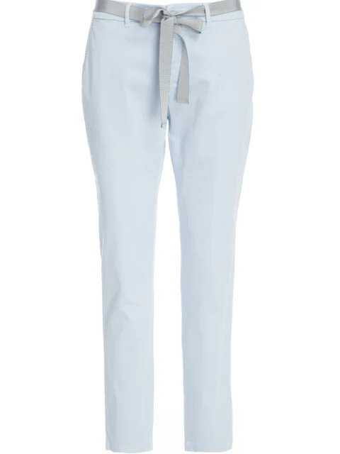 Детали: прямой крой, слегка зауженный книзу, средняя посадка, французские боковые карманы, сзади два прорезных с рантом и пуговицей, отвороты по нижнему краю. Пояс со шлевками для ремня, лентой, потайной крючок, ширинка.