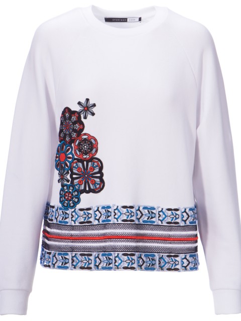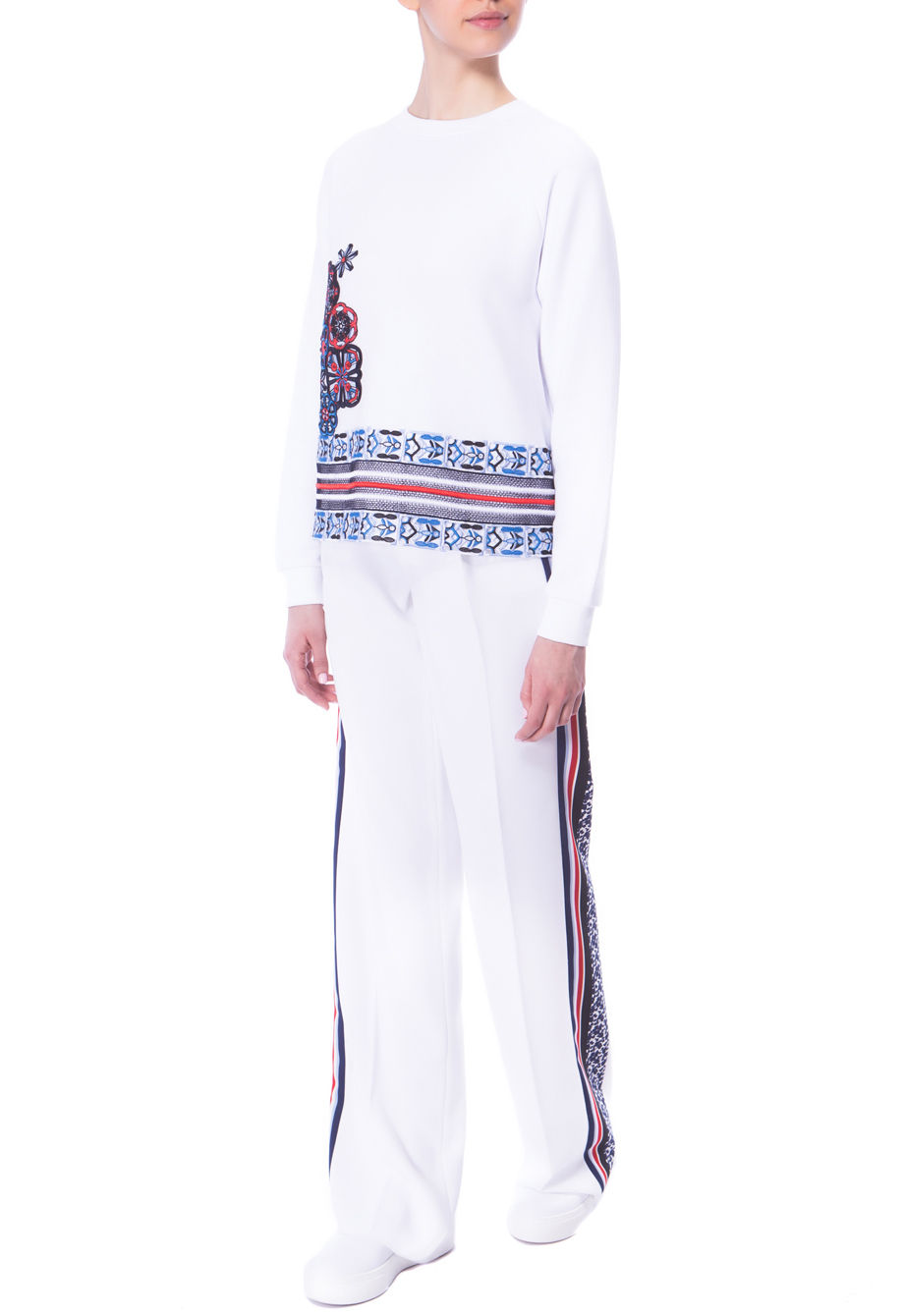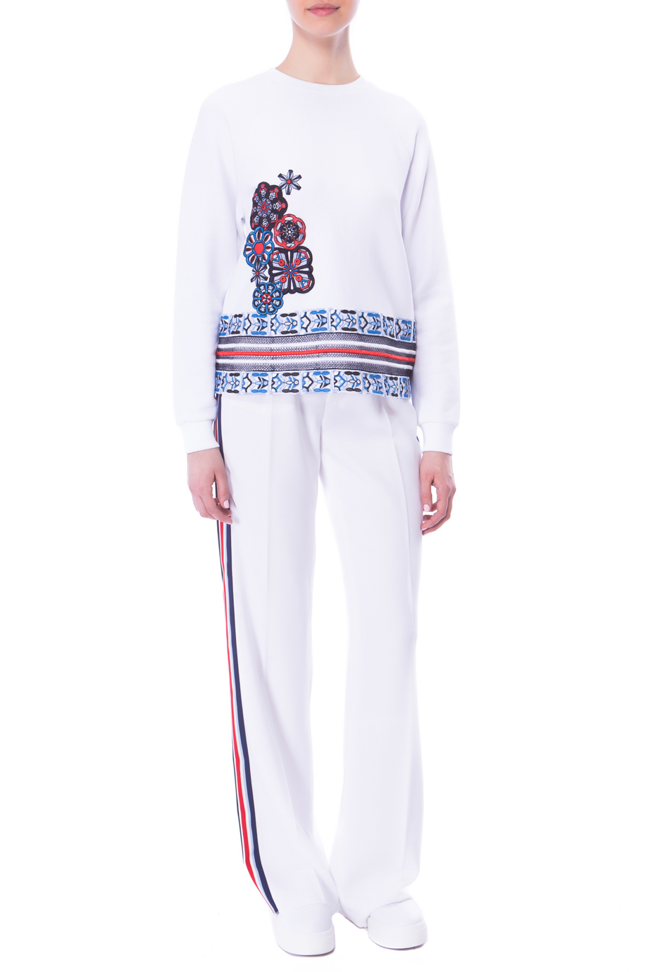 Свитер прямого кроя с круглым вырезом и длинным рукавом регланом. Горловина, манжеты и талия на резинке.