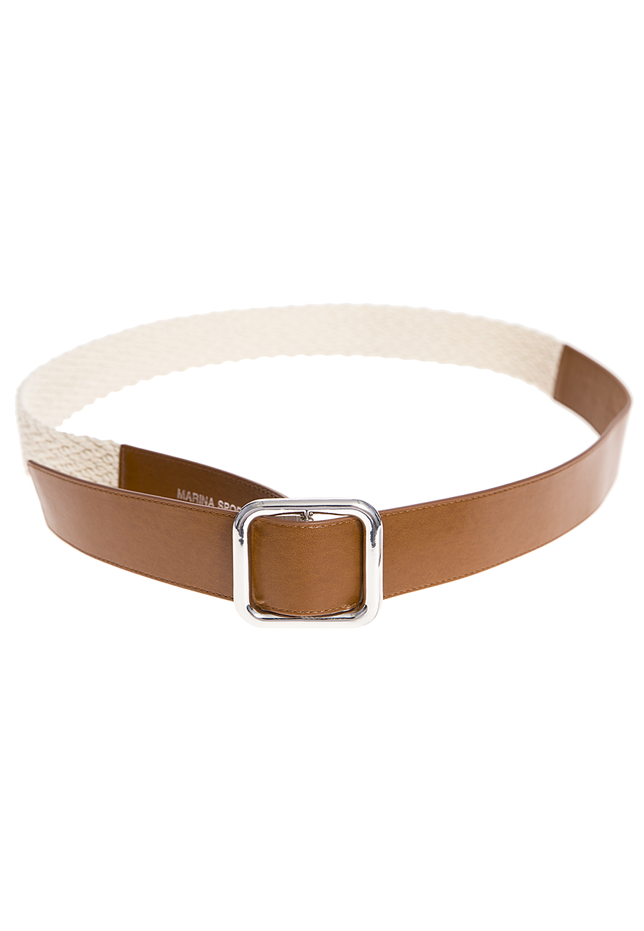 Детали: плетёный ремень из хлопковой нити с вставками из гладкой матовой кожи, затяжная пряжка.