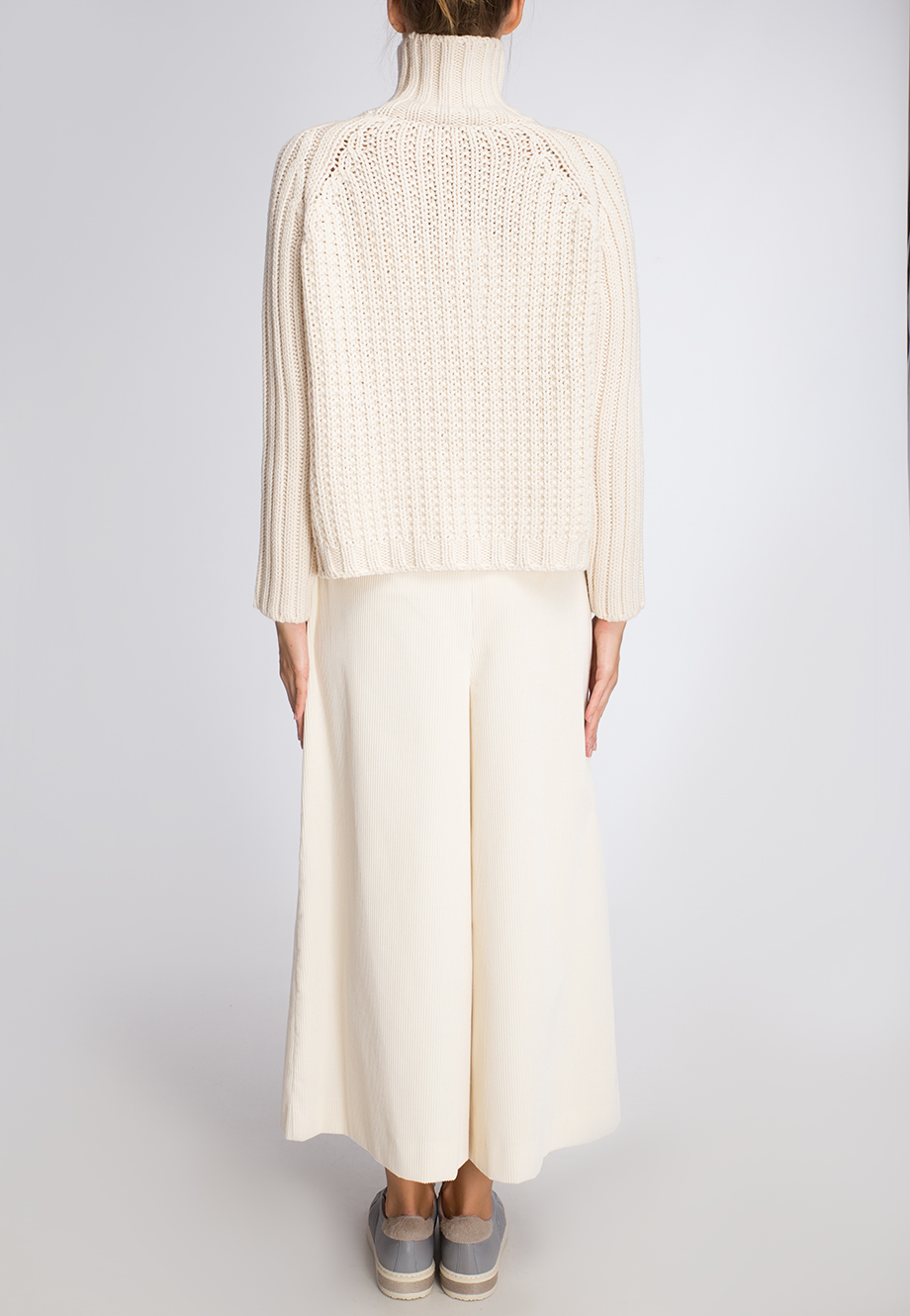Детали: прямой крой, высокий ворот, длинный рукав реглан, фактурный узор вязки.