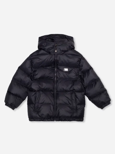 Чорна куртка DOLCE&GABBANA зі знімним капюшоном та металевою пластиною з логотипом