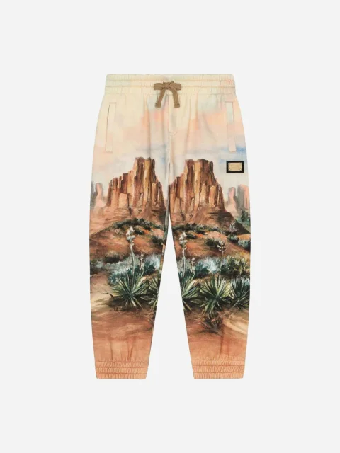 Бежеві штани DOLCE&GABBANA з принтом та кишенями