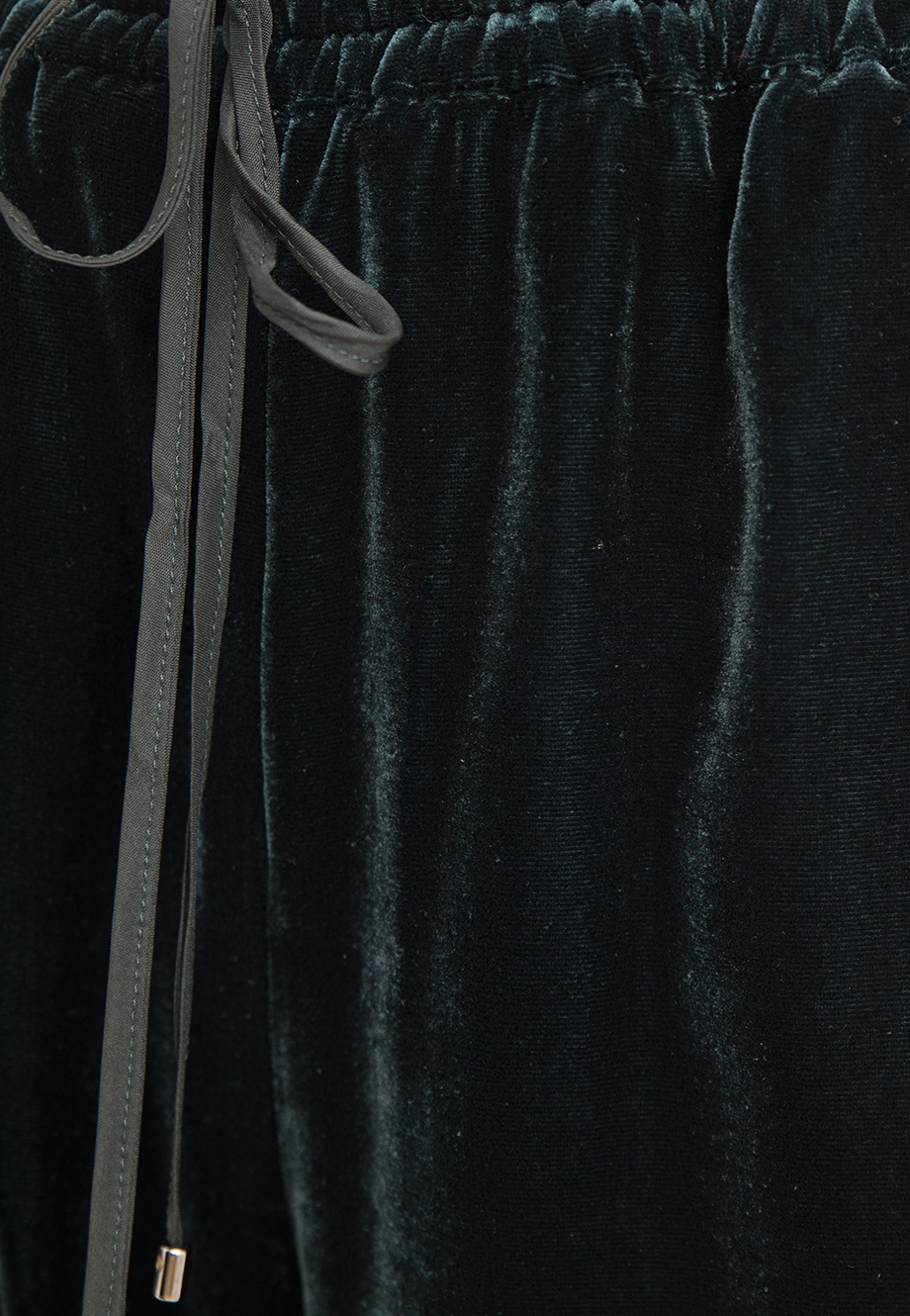 Детали: прямой свободный крой, высокая посадка, пояс на кулиске со шнурком, французские боковые карманы.