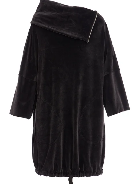 Детали: овальный крой, высокий ассиметричный ворот с молнией по плечевому шву, спущенный рукав длиной 7/8, по нижнему краю затяжка со шнурком.