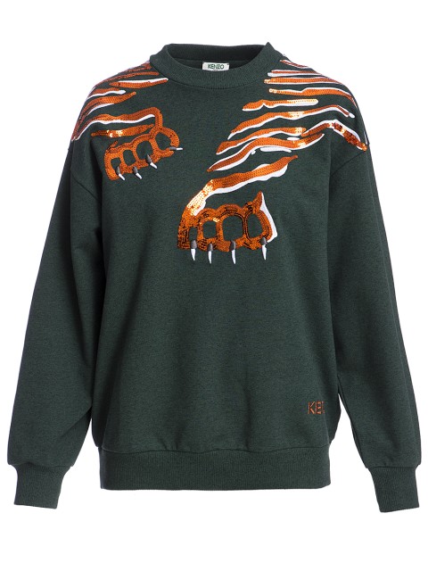 Детали: овальный крой, круглый вырез горловины, длинный втачной рукав с манжетой. Вышивка пайетками по мотивам принта Crawling Tiger. Манжета по нижнему краю.