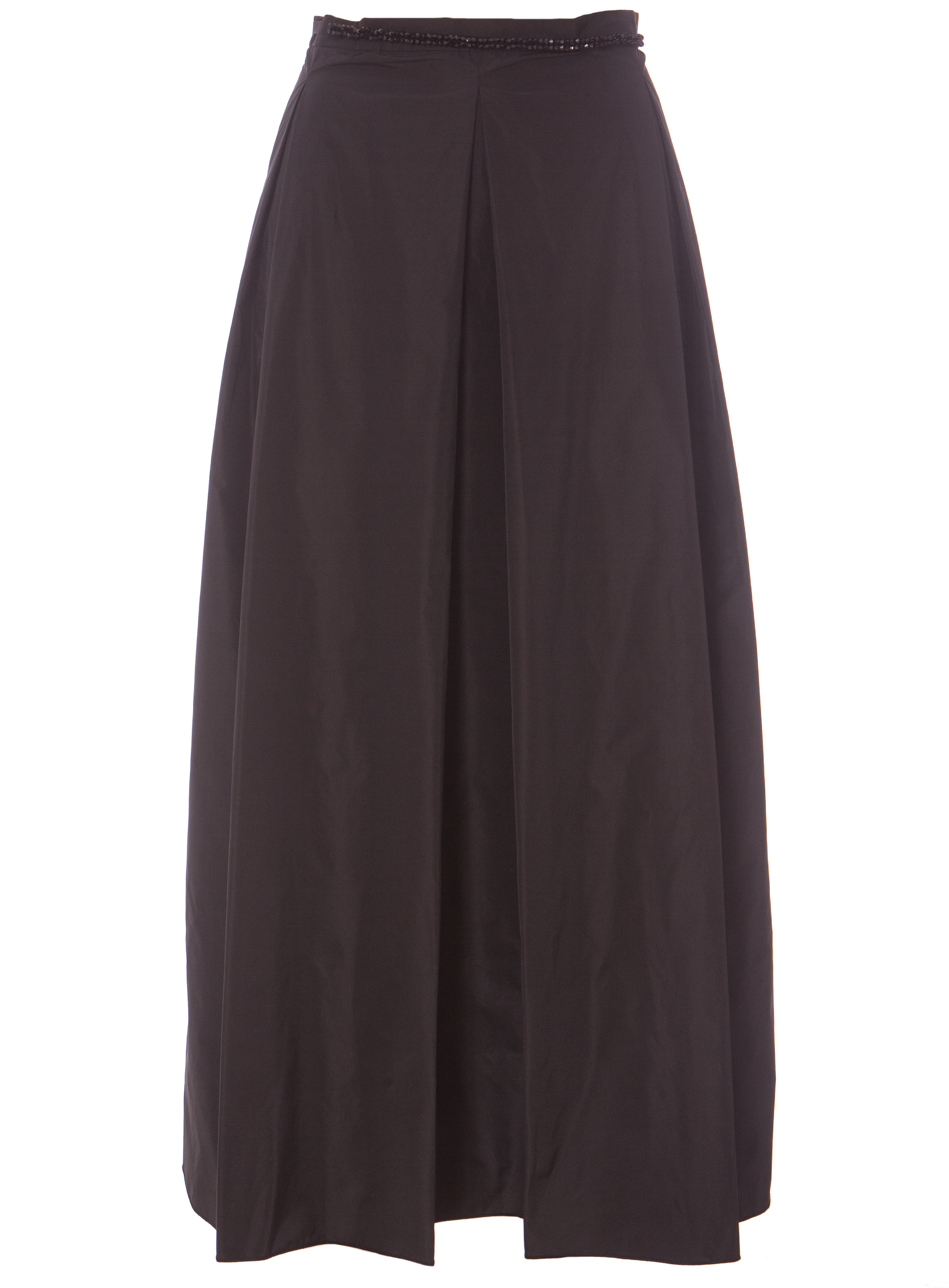 Длинная юбка с высокой посадкой и тонким декоративным поясом. Застегивается сзади на скрытую молнию и завязывается лентами в тон. Изделие без подклада.